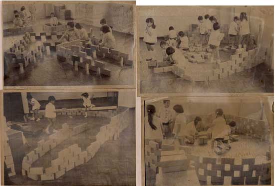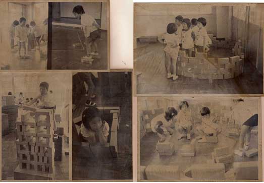 * Children are enjoying to put back the block after playing.